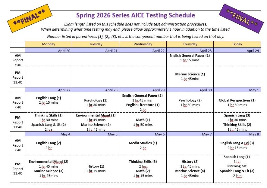 Booker High School has been offering the Cambridge International AICE program since the 2013-14 school year. It is a highly rigorous, college-preparatory program that allows students to earn college credit while in high school. The Cambridge AICE program is a magnet program that students apply to.
